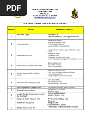 100 2 100 found this document useful 2 votes 221 views 3 pages. Program paling berjaya dan berkesan membentuk tabiat kesihatan seawal. Rancangan Tahunan Kelab Doktor Muda 2020.
